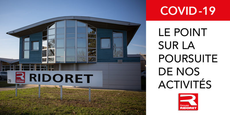 Les différentes filiales du Groupe Ridoret se sont organisées pour maintenir une activité normale. Afin de protéger la santé de nos salariés et de nos clients, nous appliquons rigoureusement le protocole sanitaire établi pour notre secteur d’activité. Toutes nos interventions, chez les clients particuliers et sur les chantiers, sont maintenues.