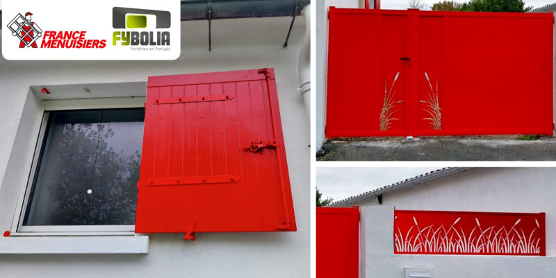 Une réalisation signée France Menuisiers. Installation d’un portail et la d’une clôture (fabrication Fybolia), ornés d’un décor roseaux.