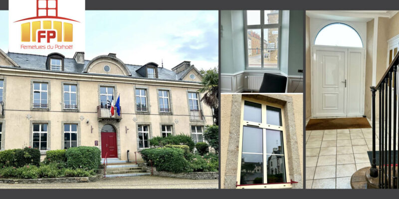 Fermetures du Porhoët à remplacé les menuiseries extérieures de la Mairie de Guilliers (menuiseries en aluminium bicolore).
