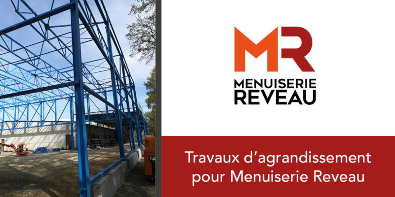 Menuiserie Reveau a entrepris d’importants travaux d’agrandissements afin d’optimiser sa production de menuiseries en bois. La fin de la première phase des travaux est prévue pour le 14 juin 2019. Cette extension doublera la surface actuelle des locaux.