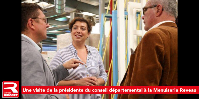 Selon Damien Reveau, dir. général délégué du Groupe Ridoret : « La Présidente du département 79 était en tournée cantonale sur Cerizay, et sur la proposition des élus locaux, elle s’est arrêtée à la Menuiserie Reveau pour découvrir les savoir-faire de l’entreprise. Elle était accompagnée de son cabinet, ainsi que Thierry Marolleau, vice-président et Sylvie Renaudin, conseillère départementale, et Anne-Marie Reveau Maire de Combrand. J’ai pu leur présenter le Groupe Ridoret, ses métiers et débouchés, ainsi que la capacité du groupe à répondre à des projets d’envergure, tant en menuiserie intérieure qu’extérieure. »
